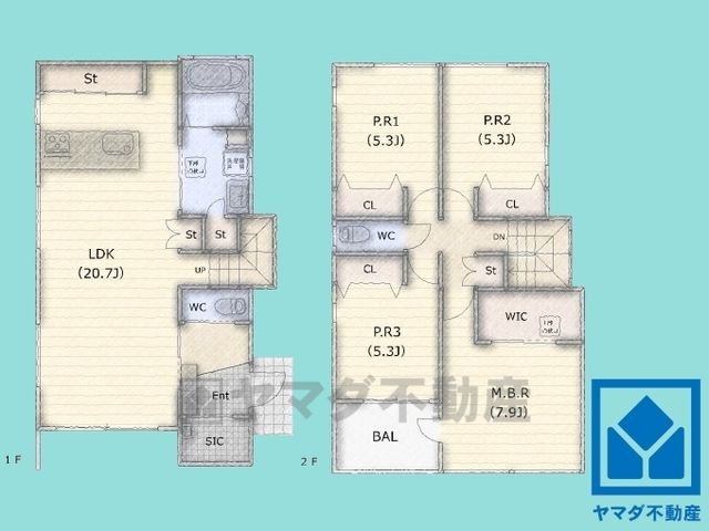 | 間取り詳細 | LDK20.7畳(1F)、洋7.9畳(2F)、洋5.3畳(2F) | 都市計画 | 市街化区域 |