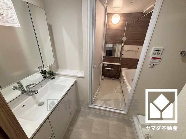 浴室暖房乾燥機付き。真冬の寒い浴室を暖かく、また雨の日の洗濯物の乾燥にと多用途に活躍する機能です。