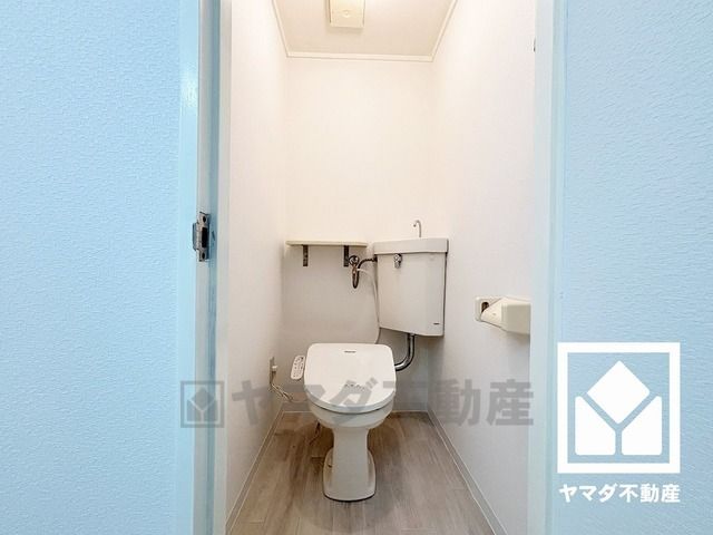 明るく清潔感溢れるトイレです。温水洗浄便座付きで、季節を問わずいつでも温かい便座をお使いいただけます。