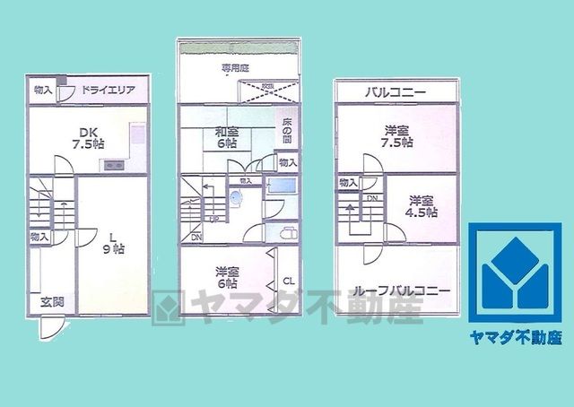 南向きのルーフバルコニーで陽当たり、風通し良好。広々としているため、お洗濯物をたっぷりと干す事ができます。