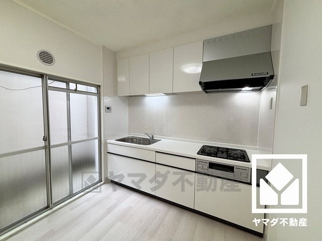キッチンは空間を有効活用できる壁付けタイプ。ドライエリアに面した窓がございますので、昼間は手元が明るく、お料理がはかどります。