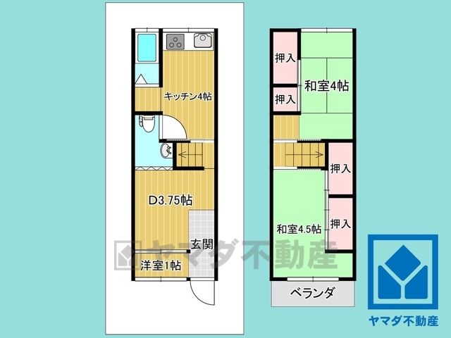 | 間取り詳細 | D3.7畳(1F)、K4畳(1F)、洋1畳(1F)、和4.5畳(2F)、和4畳(2F) | 都市計画 | 市街化区域 |