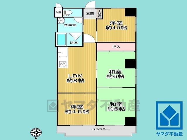 間取り詳細 | LDK8畳、和6畳、洋4.5畳 | 土地権利 | 所有権 |