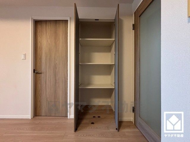 リビングにも収納があり、住空間を広々お使いいただけます。可動棚となっておりますので、用途に合わせて高さを調整していただけます。