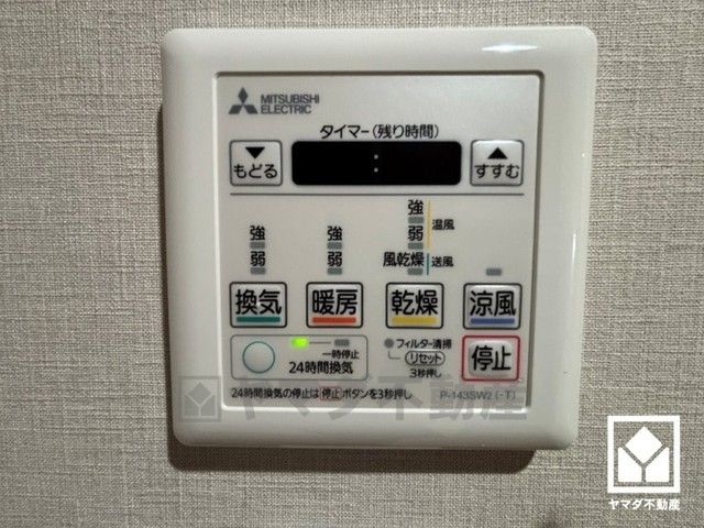 浴室暖房乾燥機付き。真冬の寒い浴室を暖かく、また雨の日の洗濯物の乾燥にと多用途に活躍する機能です。