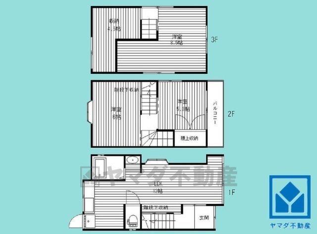 ▲3SLDK、土地面積49.52平米、建物面積75.01平米、木造3階建。