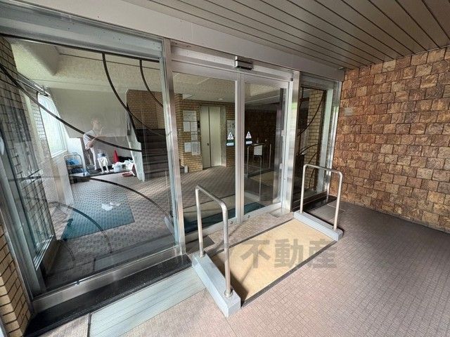 広々とした明るいエントランスです。1階部分、エントランスのすぐ隣には飲食店の店舗が入っています。
