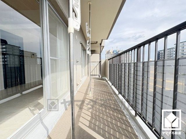 南向きバルコニーで陽当たり、風通し良好。広々としているため、お洗濯物をたっぷりと干す事ができます。
