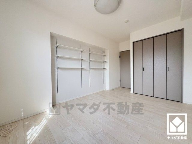 約6.9帖の洋室です。ニッチに可動棚を設置したメリハリのある空間になっています。おしゃれなインテリアが映えるデザイン性の高い洋室で、リラックスしたひとときを過ごせます。