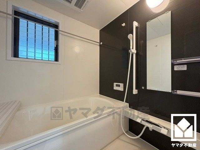 浴室暖房乾燥機付き。真冬の寒い浴室を暖かく、また雨の日の洗濯物の乾燥にと多用途に活躍する機能です。