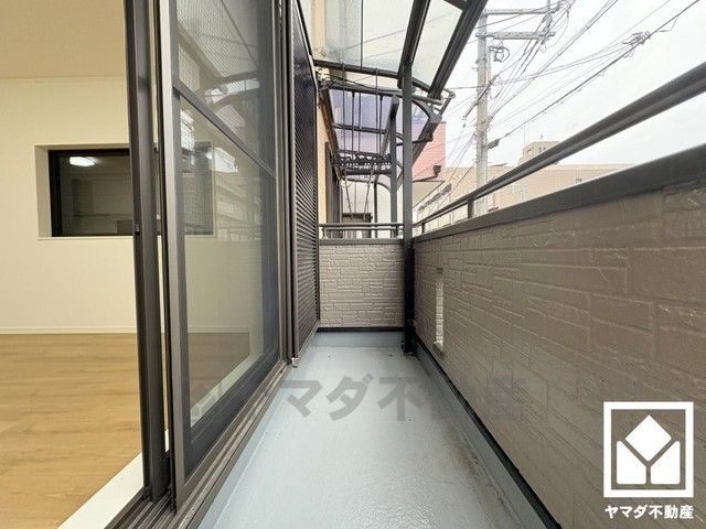 南北両面バルコニーで陽当たり、風通し良好。たっぷりの洗濯物も気持ちよく乾きます。屋根付きなので急な雨の日も安心ですね。