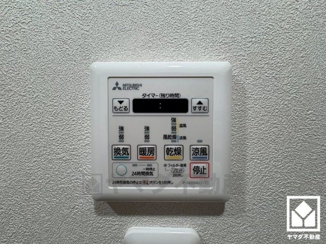 浴室暖房乾燥機付き。真冬の寒い浴室を暖かく、また雨の日の洗濯物の乾燥にと多用途に活躍する機能です。