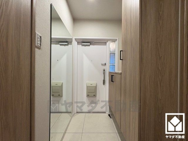 玄関にはたっぷりの収納スペースを完備。家族の靴もしっかり収納できるので、玄関がいつも片付き、気持ちよくお客様を迎えられます。お出かけの前のチェックにも便利な大きな鏡付きです。