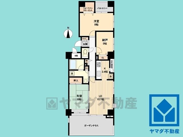| 間取り詳細 | LD10.1畳、K3.4畳、洋8畳、和6畳、その他5畳 | 土地権利 | 定期借地権(地上権) |