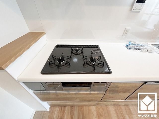 家族のごはん作りがはかどる。同時調理ができる3口コンロ付き。