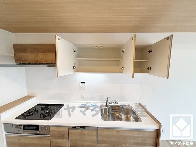 キッチン収納の多さもお料理を楽にしてくれるポイント。吊戸棚がございますので、スッキリとした空間が保てます。