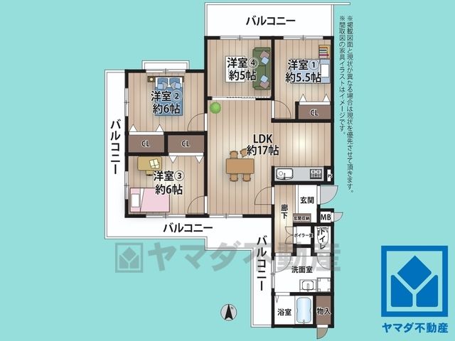 間取り詳細 | LDK17畳、洋6畳、洋5.5畳、洋5畳 | 土地権利 | 所有権 |