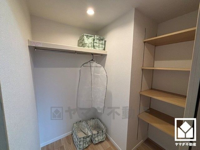 収納力豊富なウォークインクローゼット付き。お洋服はもちろん、スーツケースなどの大物、日用品のストックもしっかり収納できます。稼働棚も設置されており、整理整頓がしやすい設計になっています。