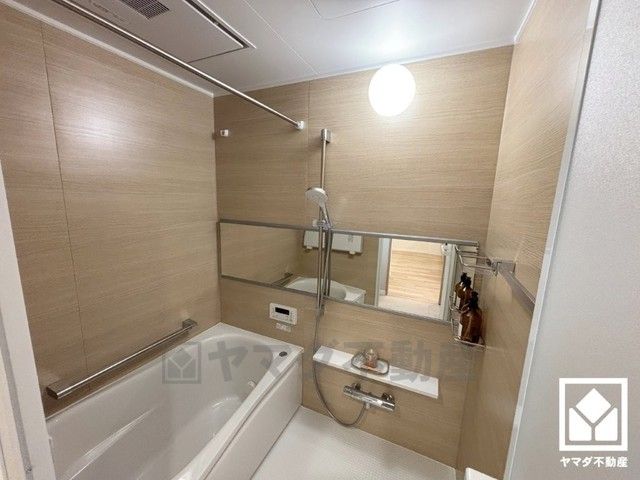 浴室暖房乾燥機付き。真冬の寒い浴室を暖かく、また雨の日の洗濯物の乾燥にと多用途に活躍する機能です。