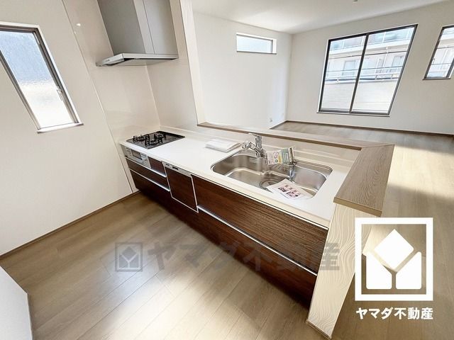 対面式キッチンなのでお料理中でもお子様の様子が分かって安心です。キッチン横には窓がございますので、昼間は手元が明るく、お料理がはかどります。