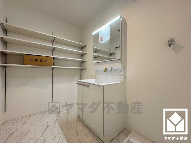 バスタオルやパジャマ等を収納できるリネン庫。洗剤等のストックも収納できるので、洗面室をすっきり清潔に保つことができそうです。