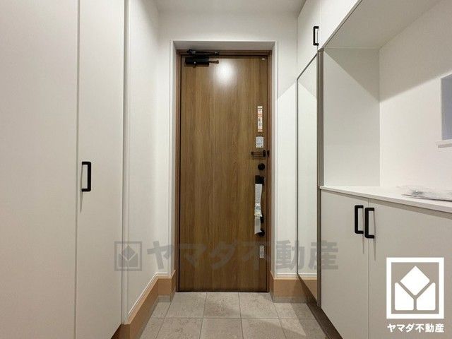 シンプルで洗練された玄関スペース。帰るたびにホッとできる、心地よい住まいの入り口。