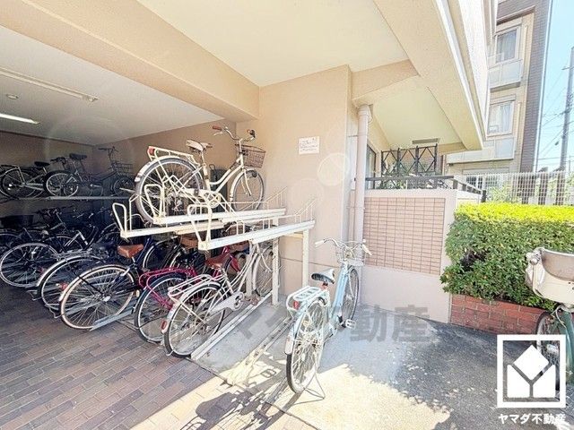 サイクルラックの設置された駐輪場を完備。スッキリ整理されて、自転車同士の接触や転倒の心配がございません。屋内なので、雨や風、直射日光から自転車を守ることができます。(1住戸1台有、2台目から月額100