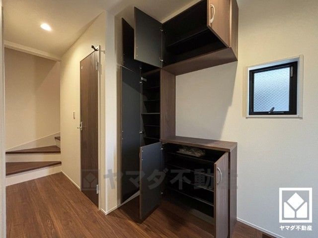 玄関にはシューズボックスを完備。家族の靴もしっかり収納できるので、玄関がいつも片付き、気持ちよくお客様を迎えられます。