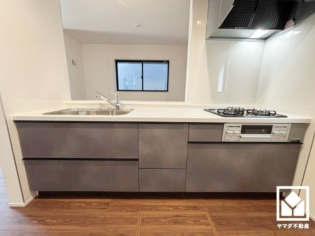 カウンターキッチンなので配膳や片付けがしやすく、お料理中でもお子様の様子が分かって安心です。キッチン横には窓がございますので、昼間は手元が明るく、お料理がはかどります。