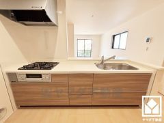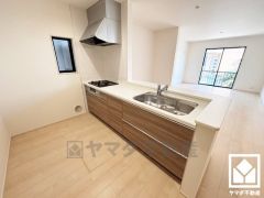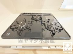 ■カウンターキッチンなので配膳や片付けがしやすく、お料理中でもお子様の様子が分かって安心です。同時調理ができる3口コンロ付き