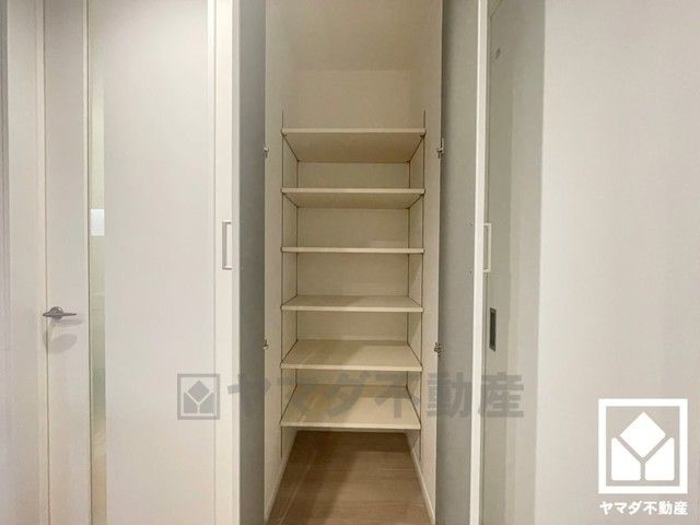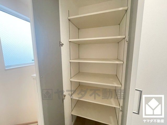 キッチン横にはパントリーがございます。まとめ買いしても心配要らずの収納力で、食品のストックや食器等もすっきり片付けることができます。