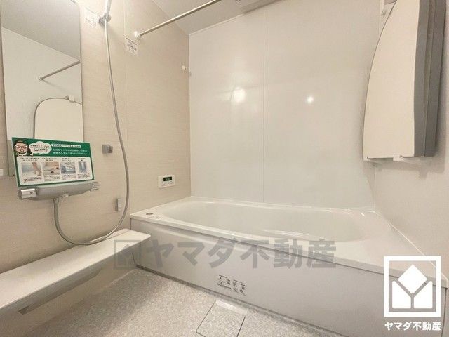 浴室暖房乾燥機付き。真冬の寒い浴室を暖かく、また雨の日の洗濯物の乾燥にと多用途に活躍する機能です。