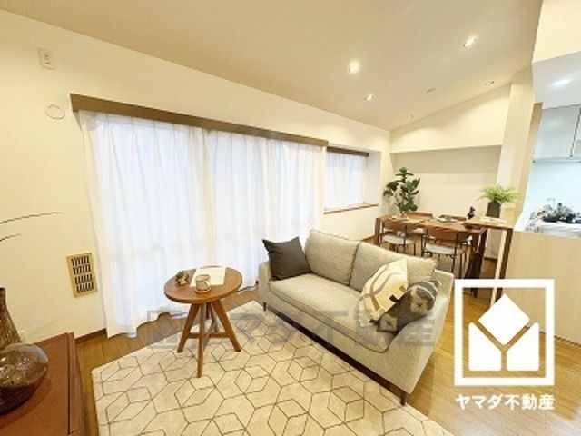 広々15.6帖のLDKが魅力。最上階だけの勾配天井高仕様で開放感があります。家族全員がリラックスできる、ゆったりとした快適リビングで温かい団らんの時間を。