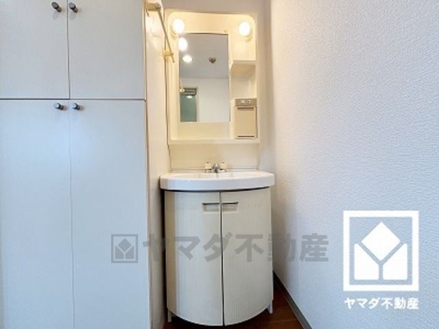 収納付きでスッキリお使い頂ける洗面台です。洗面ボウルが広めなので、忙しい朝でも身支度がしやすく時短になります。