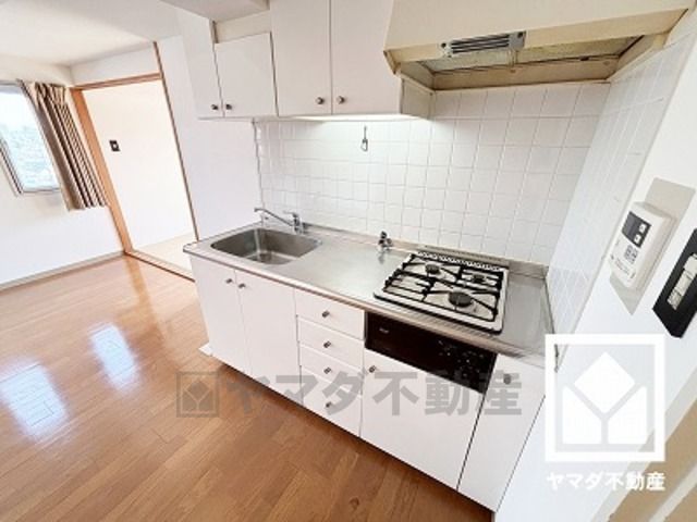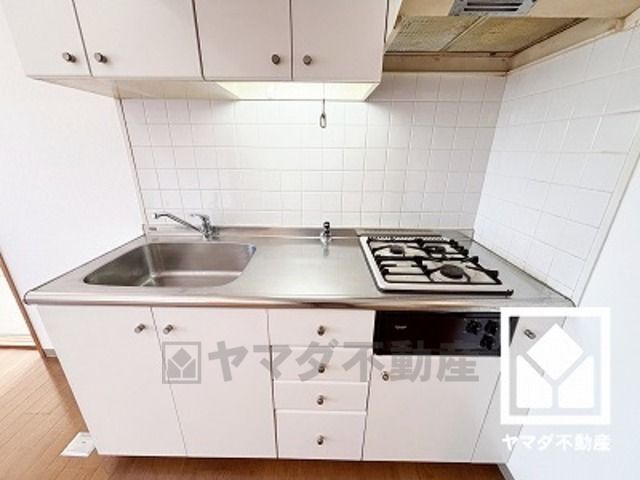 明るい白色で統一された清潔感のあるデザインが魅力のシステムキッチンです。
