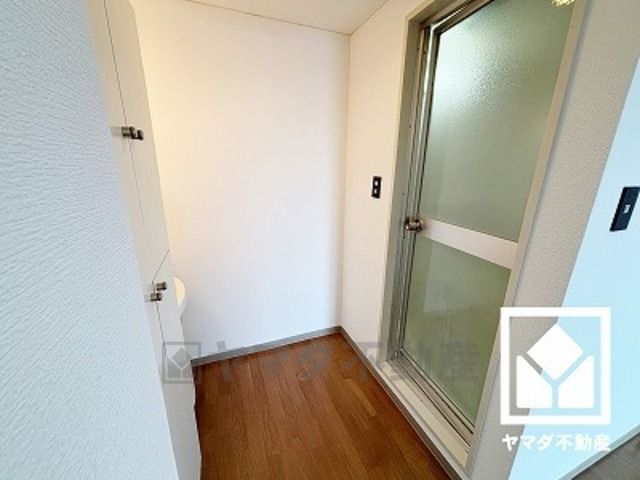 明るく清潔感溢れるトイレです。トイレットペーパーのストックや、消耗品置き場などとしてお使いいただける収納スペースがございます。