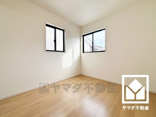 約5.2帖の2階洋室。2面採光の大きな窓からは明るい光が降り注ぎます。柔らかな光が差し込む洋室で、快適で落ち着いた生活をお送りいただけます。