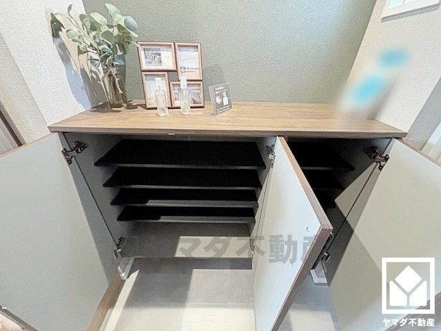 玄関にはシューズボックスを完備。家族の靴もしっかり収納できるので、玄関がいつも片付き、気持ちよくお客様を迎えられます。