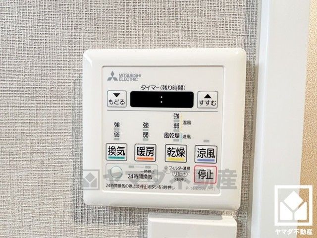 浴室暖房乾燥機付き。真冬の寒い浴室を暖かく、また雨の日の洗濯物の乾燥にと多用途に活躍する機能です。