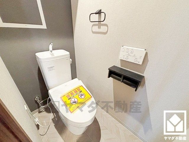 明るく清潔感溢れるトイレです。2連トイレットペーパーホルダーなのでお取替えの手間が軽減できます。
