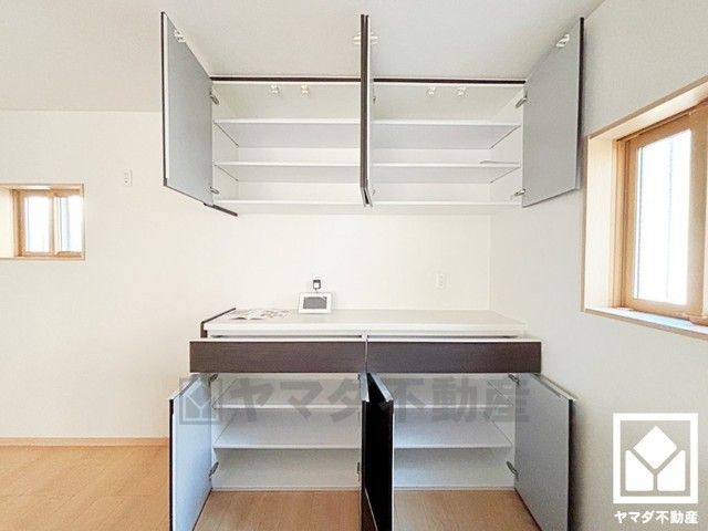 消耗品置き場、小物置きなどとしてもお使いいただける広々としたカウンターが設置されています。
