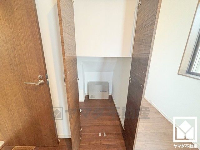 空間を無駄なく活用、階段下の賢い収納。日用品のストックもスッキリ収納できます。