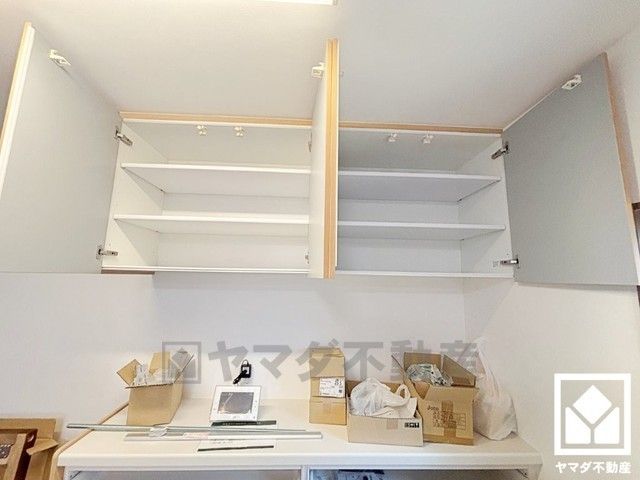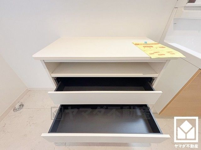 消耗品置き場、小物置きなどとしてもお使いいただける広々としたカウンターが設置されています。