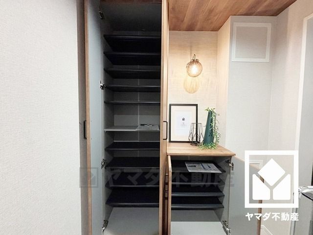 玄関にはシューズボックスを完備。家族の靴もしっかり収納できるので、玄関がいつも片付き、気持ちよくお客様を迎えられます。