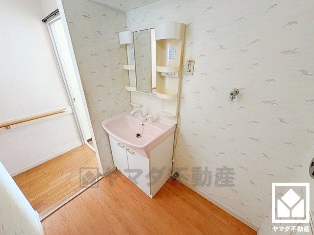 収納豊富でスッキリお使い頂ける洗面台です。洗面ボウルが広めなので、忙しい朝でも身支度がしやすく時短になります。