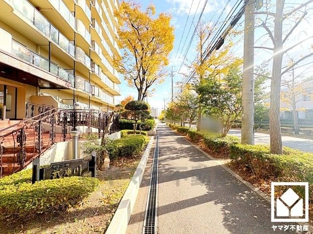 前面道路は街路樹の綺麗な通りになっており、四季の移り変わりが感じられる緑豊かな景観です。