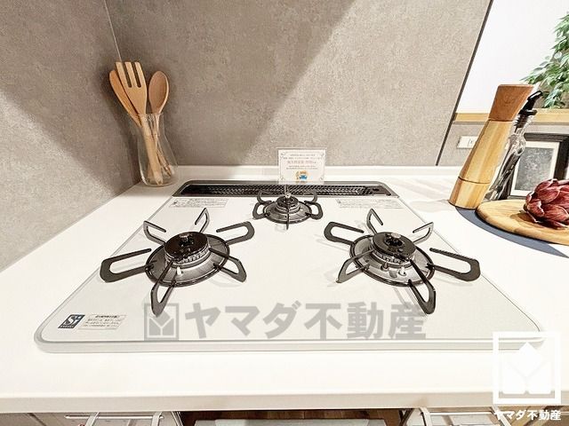 家族のごはん作りがはかどる。同時調理ができる3口コンロ付き。