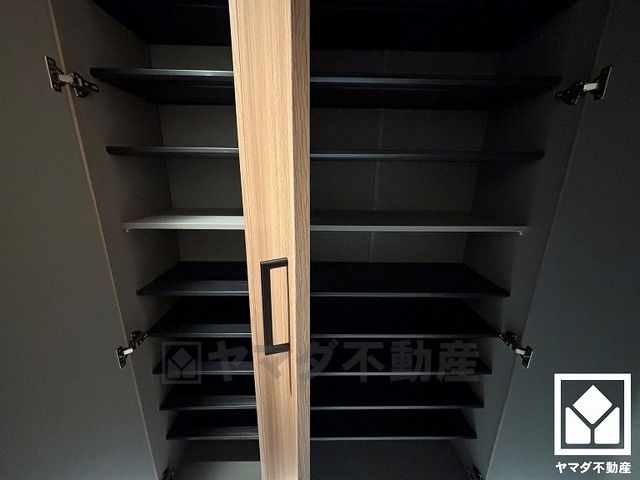 玄関にはシューズボックスを完備。家族の靴もしっかり収納できるので、玄関がいつも片付き、気持ちよくお客様を迎えられます。