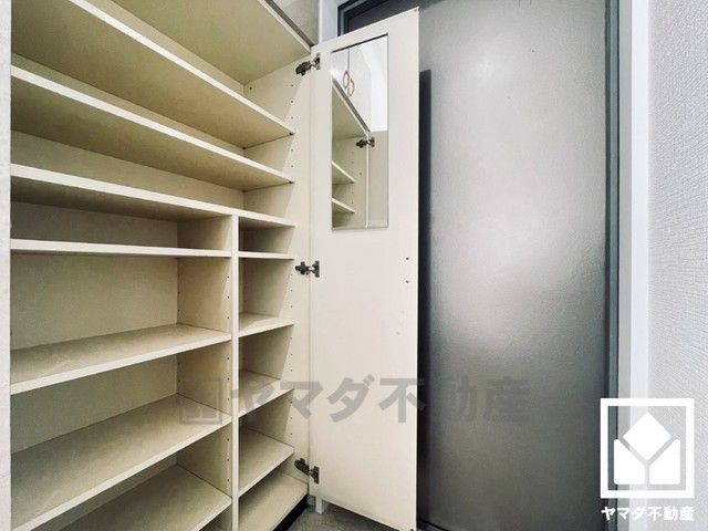 玄関にはシューズボックスを完備。家族の靴もしっかり収納できるので、玄関がいつも片付き、気持ちよくお客様を迎えられます。