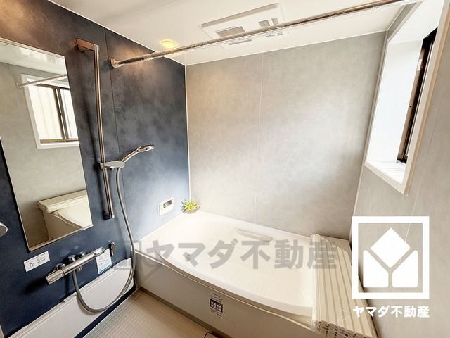 浴室暖房乾燥機付き。真冬の寒い浴室を暖かく、また雨の日の洗濯物の乾燥にと多用途に活躍する機能です。